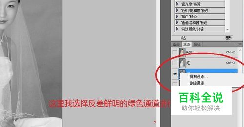 2.选取通道,选择色彩黑白反差大的通道进行复制 粘贴
