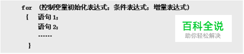 语句格式: 格式1(图一) 格式2(图二) 说明:语句是for循环语句的循环体,它将在满足条件的情况下被重复执行。 说明:循环体部分由多个语句构成,应由一对花括号括起来,构成一个语句块的形式