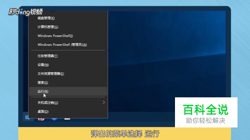 鼠标右键单击桌面windows图标,弹出的菜单选择“运行”。