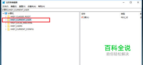 第二步打开注册表编辑器之后,点击“HKEY_CURRENT_USER”,如下图所示: