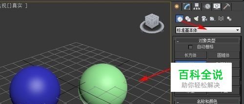 在面板中选择“创建”—“几何体”—“标准基本体”—“球体”,在视图中创建两个球体。