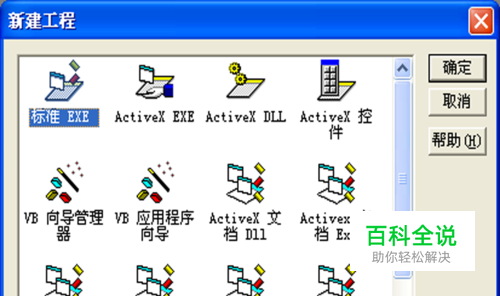 启动vb6,执行文件-新建工程命令,在弹出的对话框中选择第一个标准exe文件,点击确定进入窗口编辑区域。