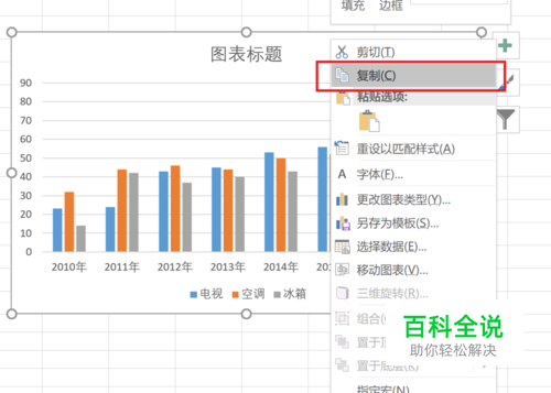 我们使用Excel生成图表后,可能需要在其他软件中以图片形式使用,下面介绍方法,首先选中生成的图表,如下图所示。