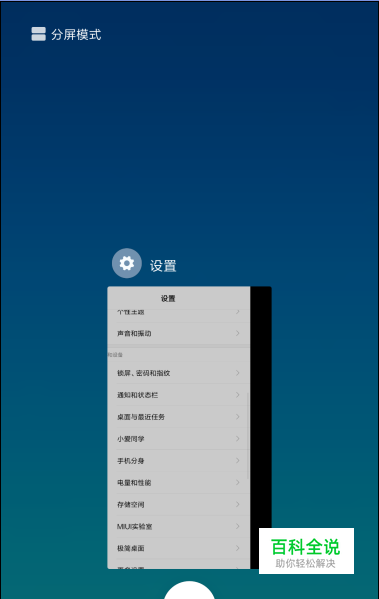 在设置选项主界面向下翻找到桌面与最近任务选项。