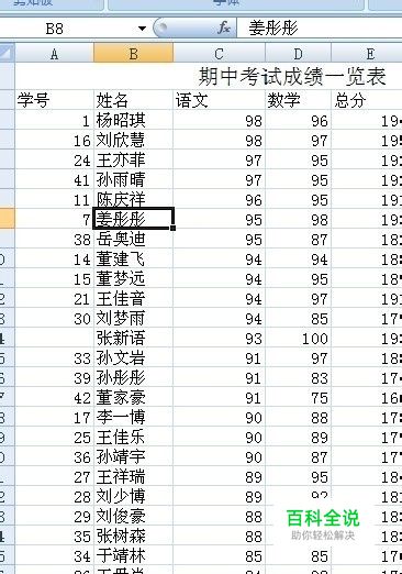 接着我们首先选择需要分析的名字,我们拖动鼠标选择数据,因为还需要只要具体分数,那么我们按住ctrl,继续选择学生的语文分数