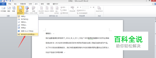 首先将光标定位到“尊敬的”之后。 在“邮件”选项卡“开始邮件合并”组中单击“开始邮件合并”按钮,在展开的列表中选择“邮件合并分步向导”,启动“邮件合并”的任务窗格。
