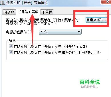 点击开始菜单选项卡,点击自定义。
