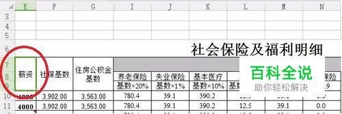 对于之前合并了的单元格,需要取消合并时,先要将其选中,如下图所示,选中“薪资”所在的合并单元格。