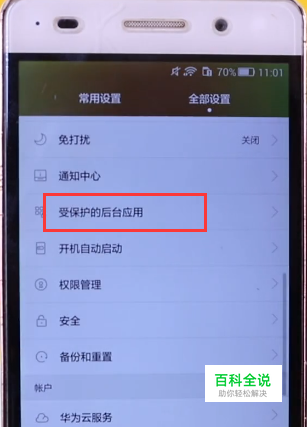 首先我们进入设置界面,点击全部设置选项,如下图所示,接着点击受保护的后台应用