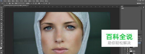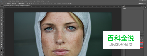 打开PS软件,并打开我们搜集到的人物图片,分析人物皮肤,这里的人物脸上有很多的雀斑,皮肤不够细腻,这都是之后我们要进行调整的。将打开的图片“Ctrl+J”复制一层,并将下面的一层隐藏。如图。