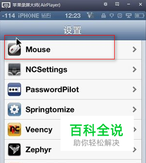 2、安装完毕进入设备的设置,下拉,可以在越狱插件设置列表里找到两个新增的,分别是“MOUSE”和“VEENCY”。“MOUSE”很明显,是用来设置我们用来控制IOS设备的鼠标的,如果不设置的话,默认是左键触摸,右键HOME。基本的应用是足够了;VEENCY则更简单,进入后设置一个自己好记的密码就行了,一会儿和电脑建立连接时候我们要用到。