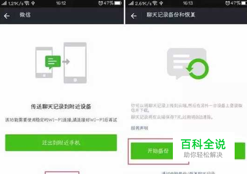 使用【迁出到附近手机】备份 进入【微信】—【我】—【设置】—【聊天】—【聊天记录备份和恢复】—【迁出到附近手机】,根据界面显示的步骤备份聊天记录。
