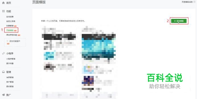 登录微信公众平台,选择“功能”——“页面模板”——“添加模板”