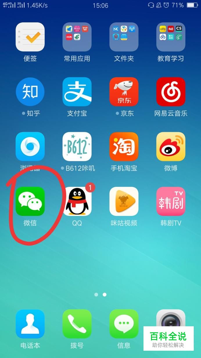 首先我们打开手机,找到微信的图标,将其点开。