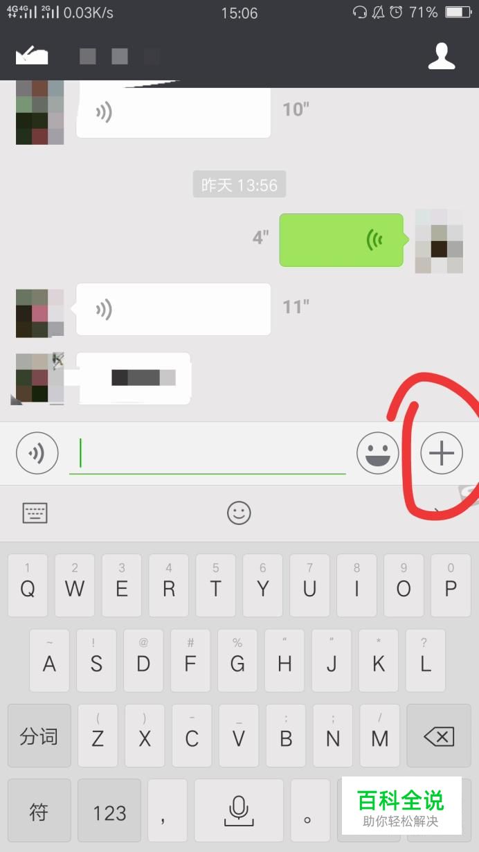 进入微信后,我们点开任意好友的对话框,然后点击输入栏右边的加号。