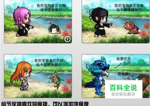 最后,关于食谱,每一个宠物的食谱都是随机出现的,并且每一个格子上放的东西只有一个会起作用,并不是可以叠加使用的,相邻食物如果是相同种类的话有额外经验,或者全部都是不同种类的食物,当然,这得看BB的心情...尴尬。最后提一下仙豆,如果全部放上的话...嘿嘿。