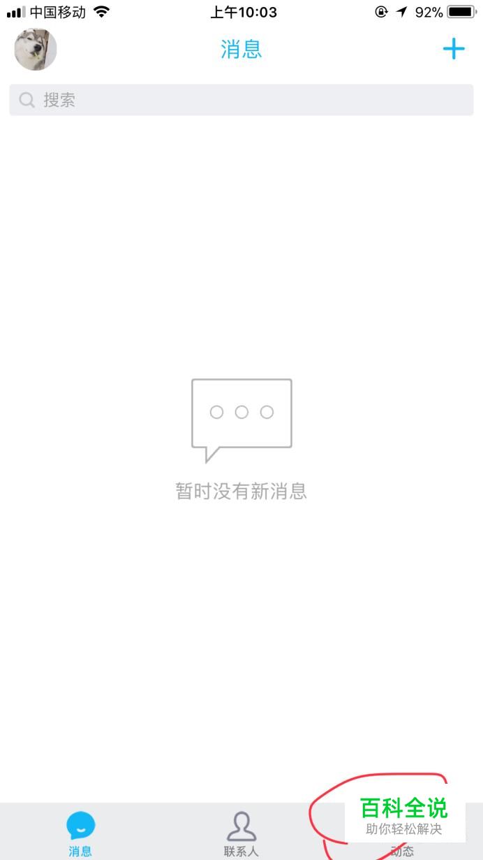 下载并打开最新版本的QQ,进入主页面后,点击右下角的动态。