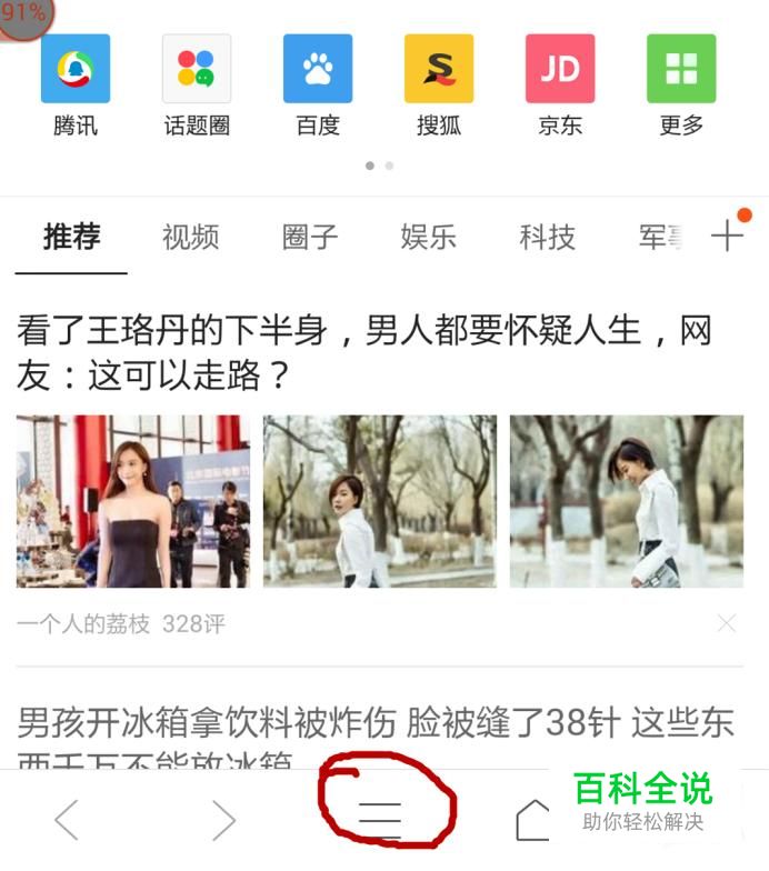首先打开QQ浏览器,在主界面下方有个“三”型的标志,点一下。