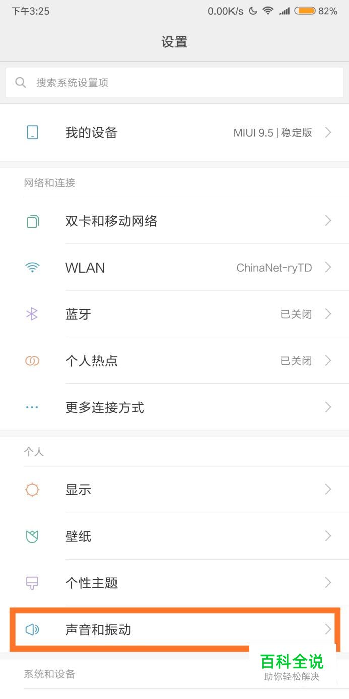 首先打开小米设置选项,找到“声音和振动”设置选项,点击进入。