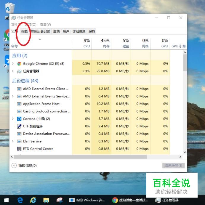在进入“任务栏管理器”窗口后,切换到“性能”选项卡。
