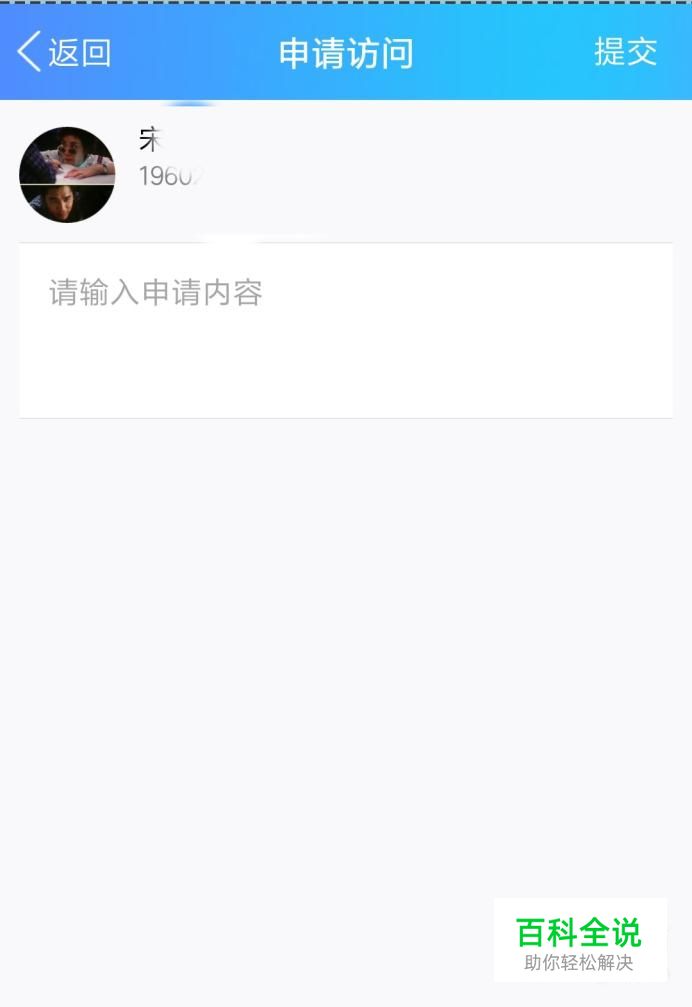 可以提出进入空间的申请,填写进入的申请,填写好后点击提交。然后就可以等待对方的回复,若对方通过,就可以进入空间了。