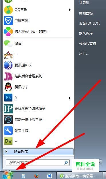 首先在桌面右下角点击“开始”然后点击 “所有程序”如图