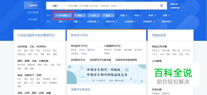 进入官网后,找到学术期刊(搜索栏的下方)。