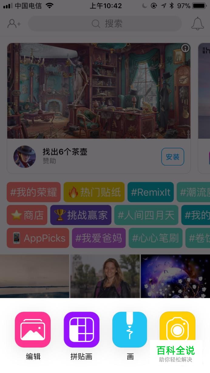 打开app,点击正中下的“+”,然后点击左下角的编辑,选取图片或是拍摄图片。