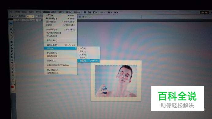 对图片来说,首先Ctrl+A选中图片,点击选择,修改,羽化。