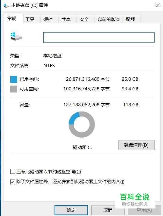 点击完鼠标右键后会出现一个菜单,在菜单中点击属性,进入属性后在点击磁盘清理。