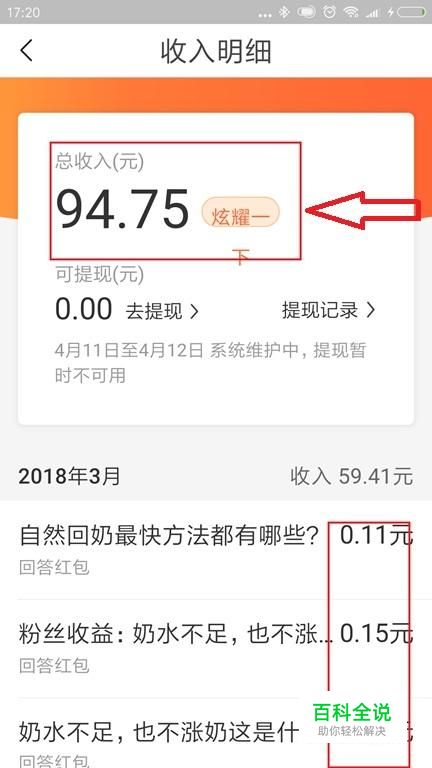 这个时候,在页面的右上角就可以看到自己的总收入,是所有问答题目的收入总和。