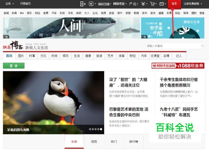 进入网易博客之后,找到网页右上角的“登陆”按钮,点击进入操作。