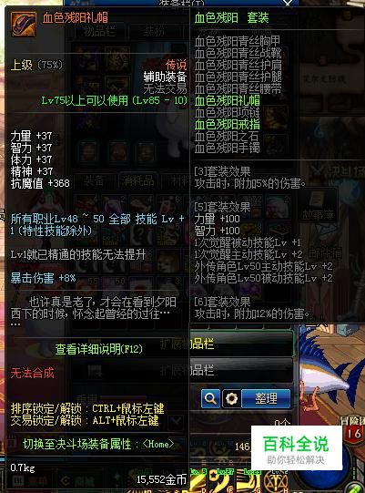 兰总套全名叫做“血色残阳套装”,套装效果对于暗枪来说加成还是蛮大的,一觉被动加一,一觉主动加二。而且6件还附加17%的白字伤害。