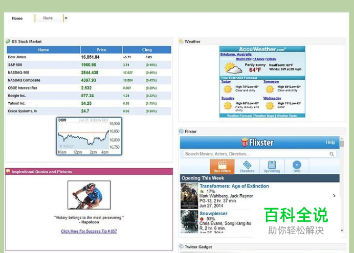 添加小工具。点击右上角的“添加小工具”按钮来找一些其他东西填充主页。 这将转入一个可以搜索和浏览小工具的页面,上面有着各种各样的信息框。这里有游戏,应用程序,RSS订阅等等——找到那些你最感兴趣的。