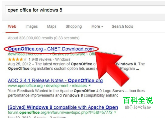 搜索支持Win 8系统的Open Office版本,然后点击它。比如说Cnet上的就可以。