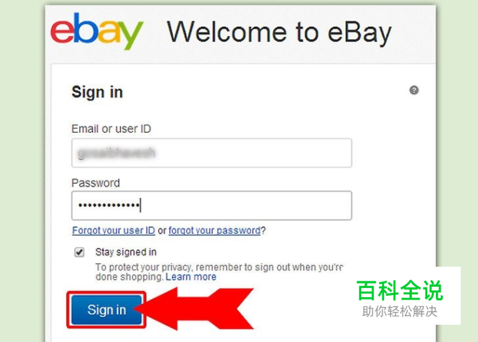前往http://www.ebay.com/页面,输入你的用户名和密码来登录账户。