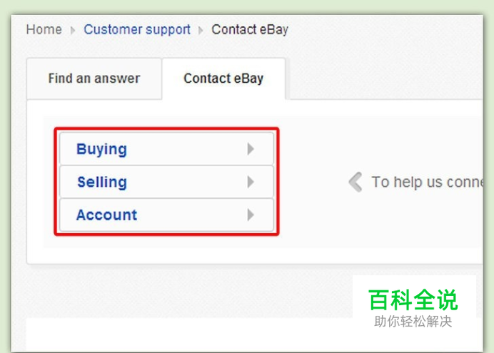 点击能够描述你咨询问题的链接。例如,如果你在购买货物后没有收到相应的物品,那么点击“购买”类别下的“没有收到货物”链接。