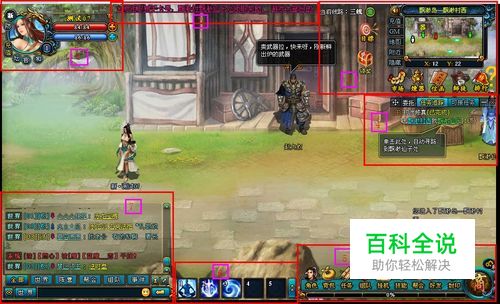 一、游戏界面说明 1、人物信息区:新---新手(门派显示) ;防—防沉迷链接 ;角色名字、血量、法力显示;傍边的“+”号,是直接使用药品的快捷键。下面是:充值、论坛、官网的链接。“和”或者“杀”PK模式切换。 2、游戏顶部滚动公告 3、小地图:上面:是所在地址 左边:线路,目标,领奖,喇叭,充值,GM,地图,附近,隐藏, 下面:地图坐标,市场,信函,师徒,排行。 4、任务面板分为:委托任务,任务追踪,可接任务。 5、系统面板:角色、背包、任务、组队、挂机、技能、帮会、好友、封印、商城、系(统设置)。 6、市场、炼器、信函、师徒、排行 7、快捷键栏:可以把技能图片放到快捷栏,默认1、2、3是打坐、法宝修炼、法宝融合。 8、聊天频道:全部、世界、阵营、帮会、组队、事件 的选择;傍边是“好友栏”标志、聊天框的控制键;聊天内容输入框,聊天表情。