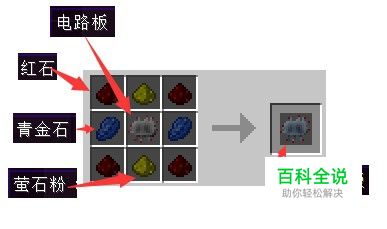 我们首先来合成一个高级电路板 需要材料有:青金石2块,红石4块,萤石2块,一块电路板。