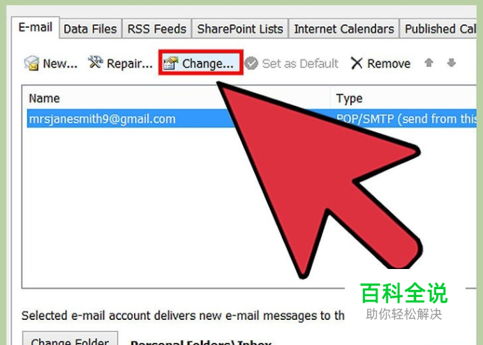 选择想要更改密码的账户。注意,这里更改的密码是Outlook用来访问邮箱账户的密码,而不是账户本身的密码。想要更改保护邮箱账户的密码,须通过邮箱服务器来进行修改。例如,如果想要更改Gmail邮箱的密码,你需要先访问谷歌账户恢复网站,修改邮箱密码,然后再在Outlook中更改密码。 如果想要修改保护Outlook数据文件的密码,请查阅下一部分。