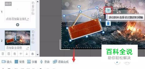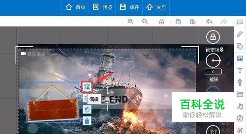 当在画布中选中物体/元素后,可以通过其侧边栏选项进行编辑,包括编辑锁定物体,定位物体所在时间轴,旋转舞台以适应对象角度,删除选中物体。