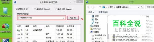 进入大番薯pe系统主界面后,我们点击桌面图标“大番薯PE装机工具”,然后在打开的大番薯pe装机工具页面中,程序会自动搜索安装系统镜像文件,或者也可单击“浏览”选项,选择要安装的系统镜像文件