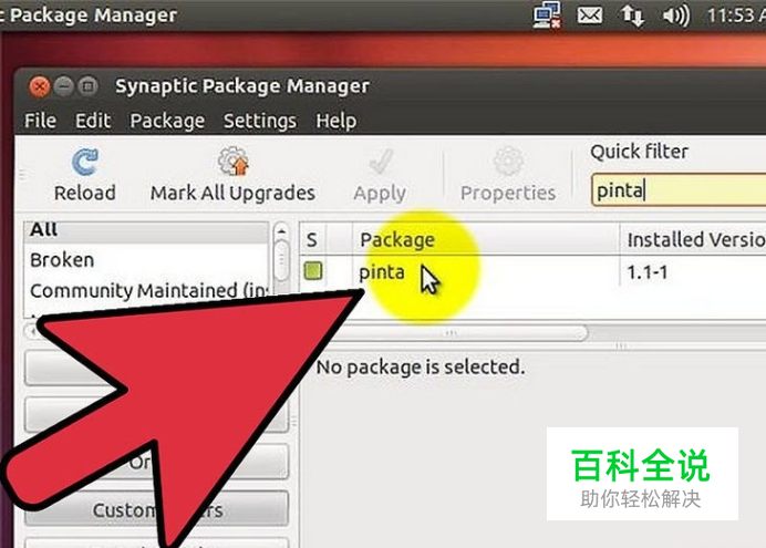 找出你希望卸载的程序。在左边的窗格中,你可以按照类别对程序进行排序列表。已安装的程序(软件包)将在列表显示在Synaptic上方的窗格内。 程序经常以它们的缩写名称显示。例如,Media Player常被显示为“mplayer”。如果你不能通过程序的缩写名称确定它是否是你需要删除的程序,请在删除它前在线搜索有关信息确认清楚。
