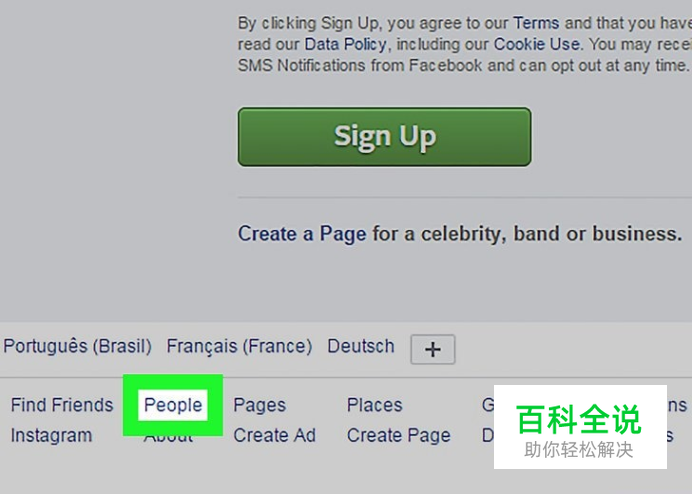 在电脑上访问Facebook主页。网址是https://www.facebook.com/。你无法在移动设备上访问用户搜索栏。