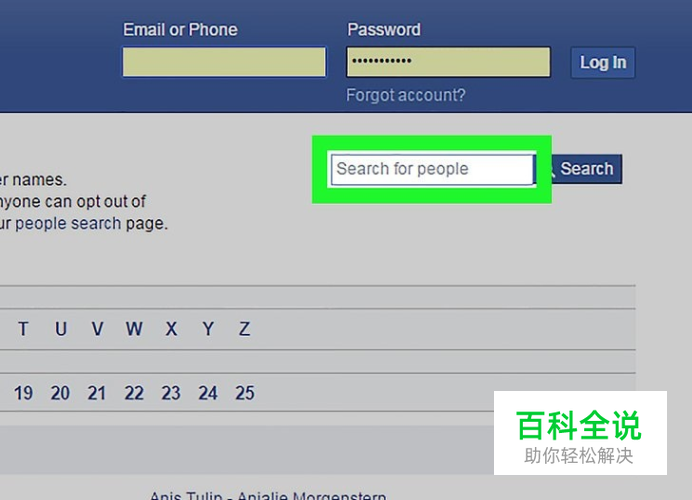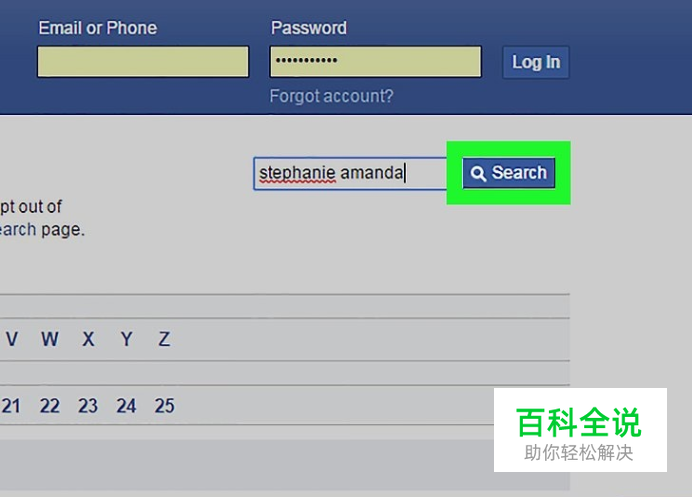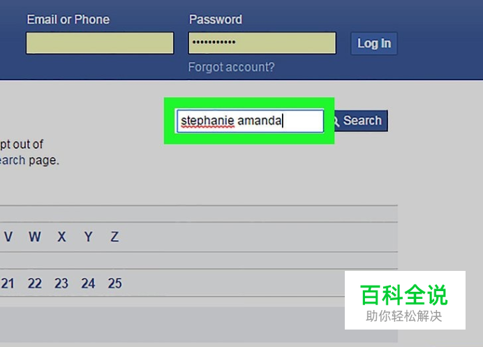 在地址栏里输入facebook.com "名字 姓氏" 。先输入名字,后输入姓氏。 例如,你可以输入。