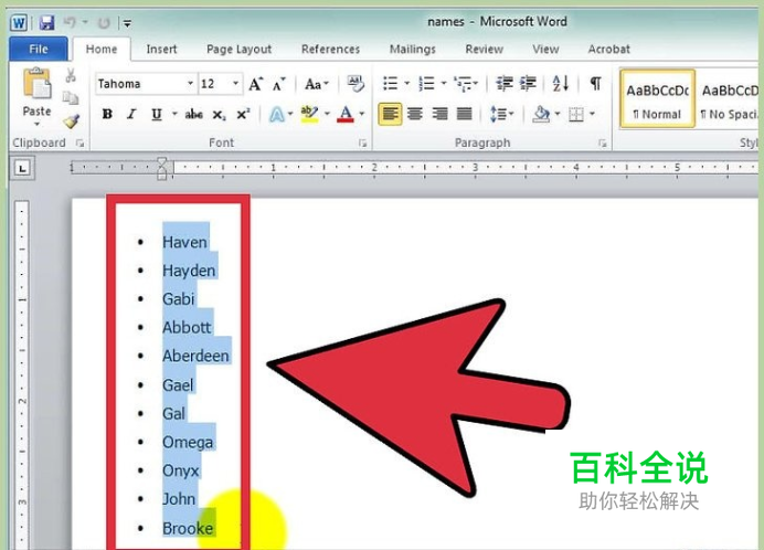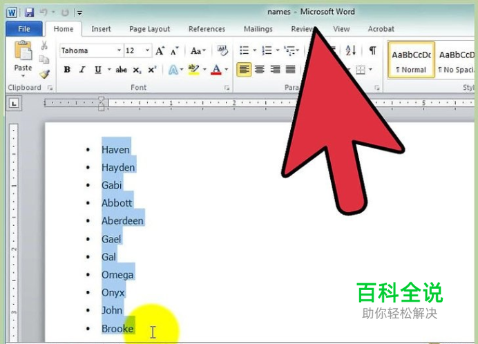 如果你想按字母顺序排列的列表是一个大文件的一部分,打亮要排序的部分。