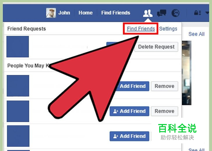 点击Facebook顶部菜单栏的“好友”按钮。在弹出的列表中,你会看到尚未处理的好友请求。 该部分介绍的高级搜索功能只能通过网页版Facebook来使用。如果你想使用Facebook移动端的应用程序来查找好友,请点击此处。