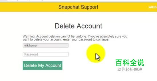 在电脑上访问Snapchat账户删除页面。你只能通过电脑的浏览器删除账户。账户删除页面是隐藏的,你可以前往主页,依次点击主菜单 → 基础信息 → 账户设置 → 删除账户,进入删除界面。 也可以在地址栏中,复制下面的地址:https://support.snapchat.com/delete-account