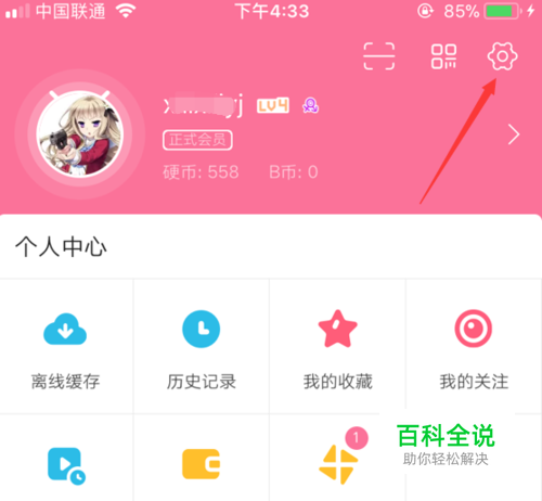 打开我的页面后,我们点击页面右上角如图所示的设置图标,进入设置页面