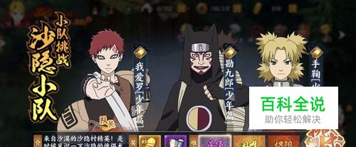 火影忍者ol游戏中, 沙隐的马基小队需要先挑战之前的三个小队,完成挑战后,就可以进行沙隐小队的挑战。